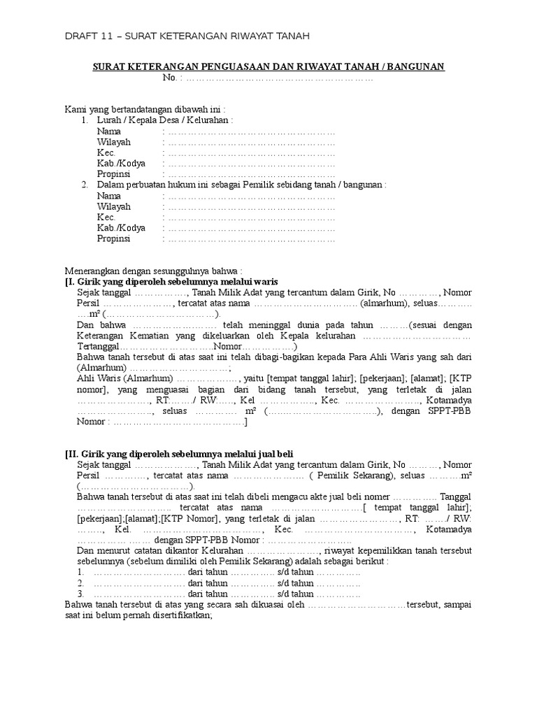 Lihat Contoh Surat Keterangan Riwayat Tanah Dari Desa. Surat keterangan riwayat tanah. surat keterangan riwayat tanah untuk tanah tidak bersertifikat i e letter c girik etc. surat keterangan riwayat tanah. contoh surat keterangan riwayat tanah dari desa contoh surat. surat keterangan tanah dan bangunan. contoh surat pernyataan kepemilikan tanah yang benar rumah123 . surat keterangan tanah dan bangunan Baca juga: Keterangan