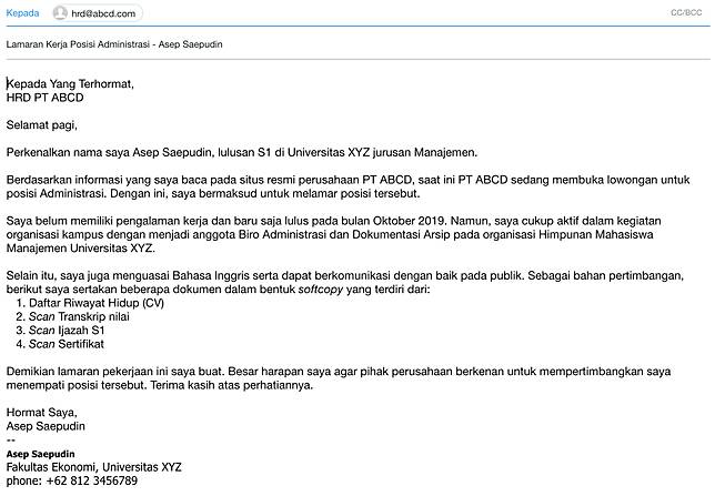 Contoh Surat Lamaran Email Hp Contoh Surat